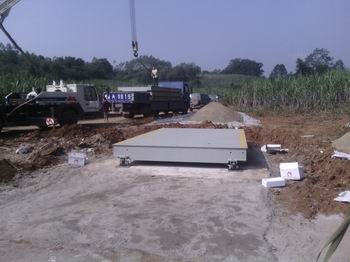 柳州特力汽車衡采用模塊化軸銷搭接,以便秤臺之間可以搭接互換,便于秤體現場安裝。限位采用縱向與橫向結合的方式,保證秤體縱向、橫向不移位。